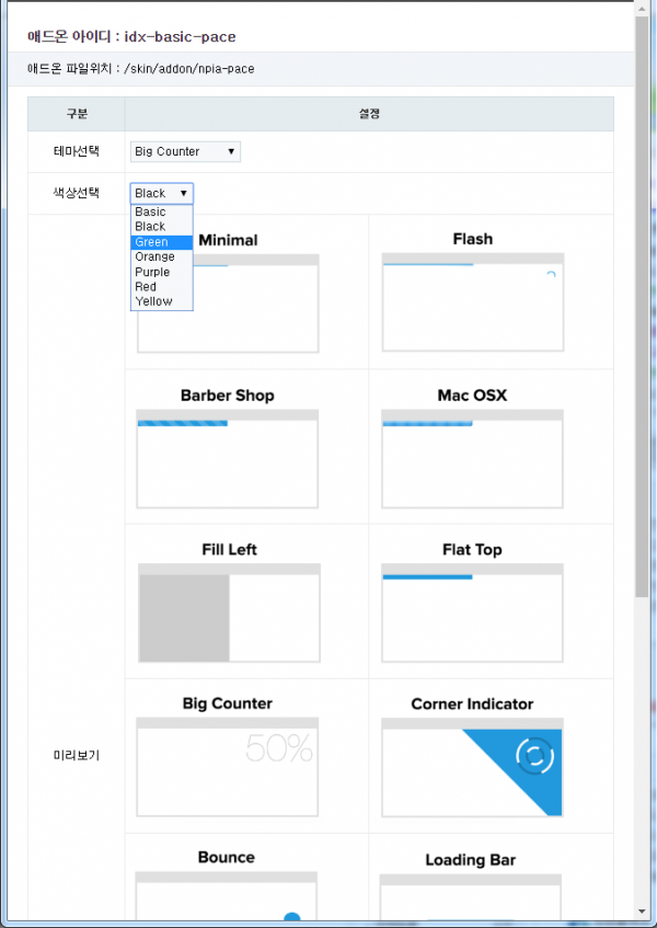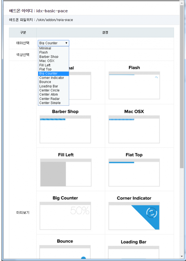 Minimal, Flash, Big Counter 등 다양한 유형으로 설정이 가능합니다.
